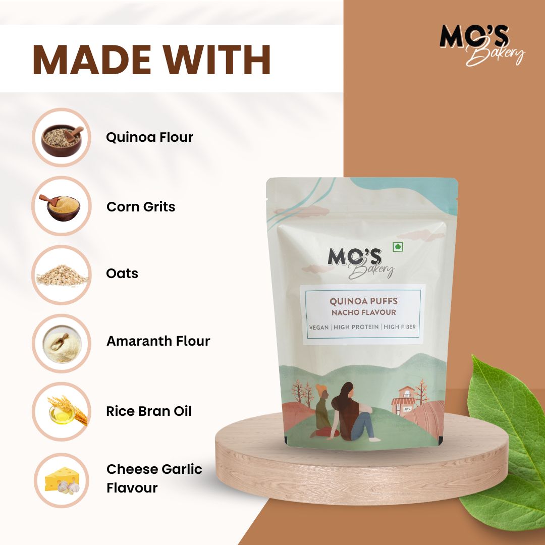 - Quinoa Flour, Corn Grits, Oats Flour, Amaranth Flour, Semolina, Rice Bran Oil, Gram Flour, Cheese Garlic Flavour, Yellow Split Gram, Bengal Gram, Jowar Flour, Salt